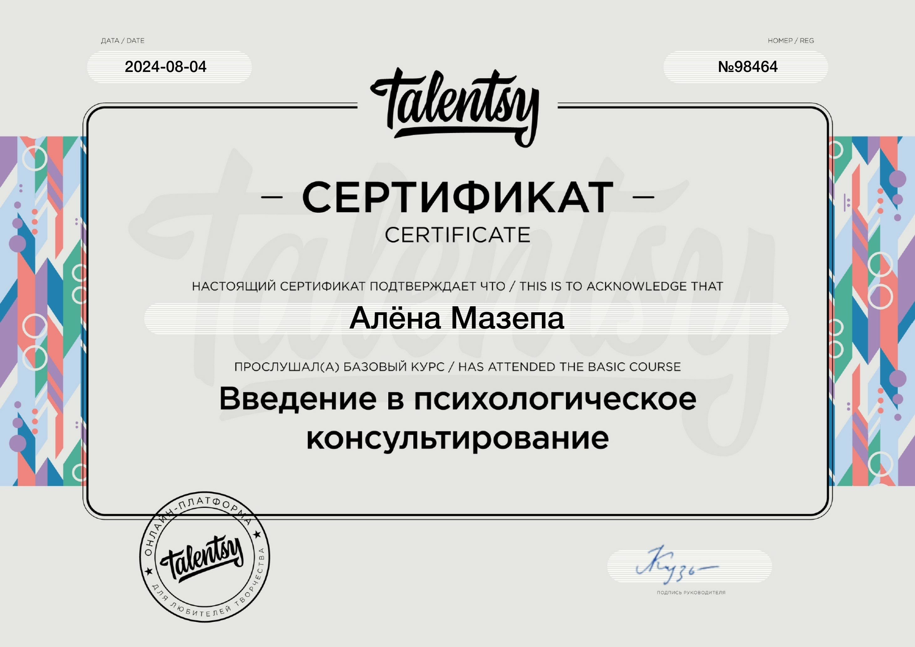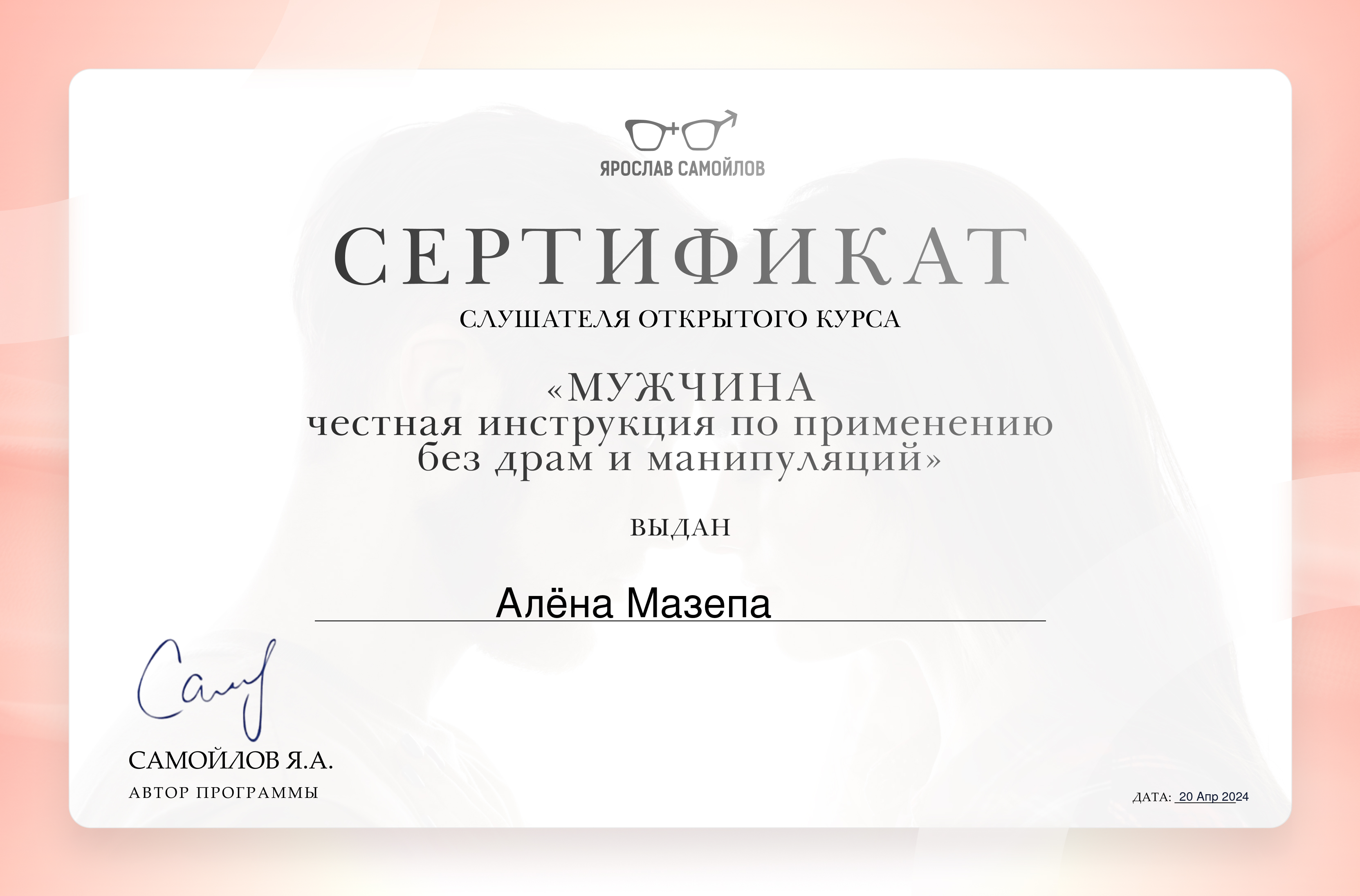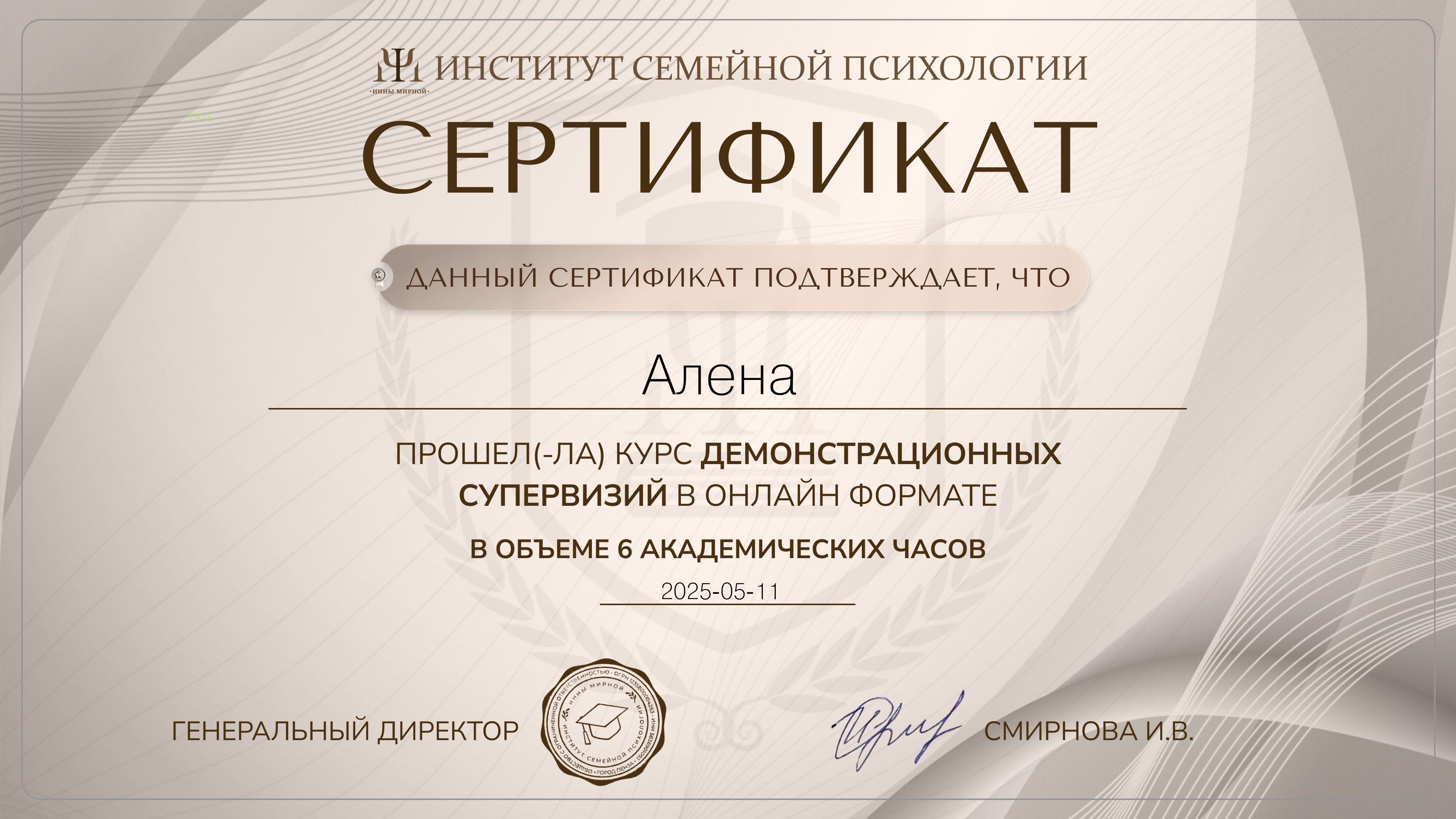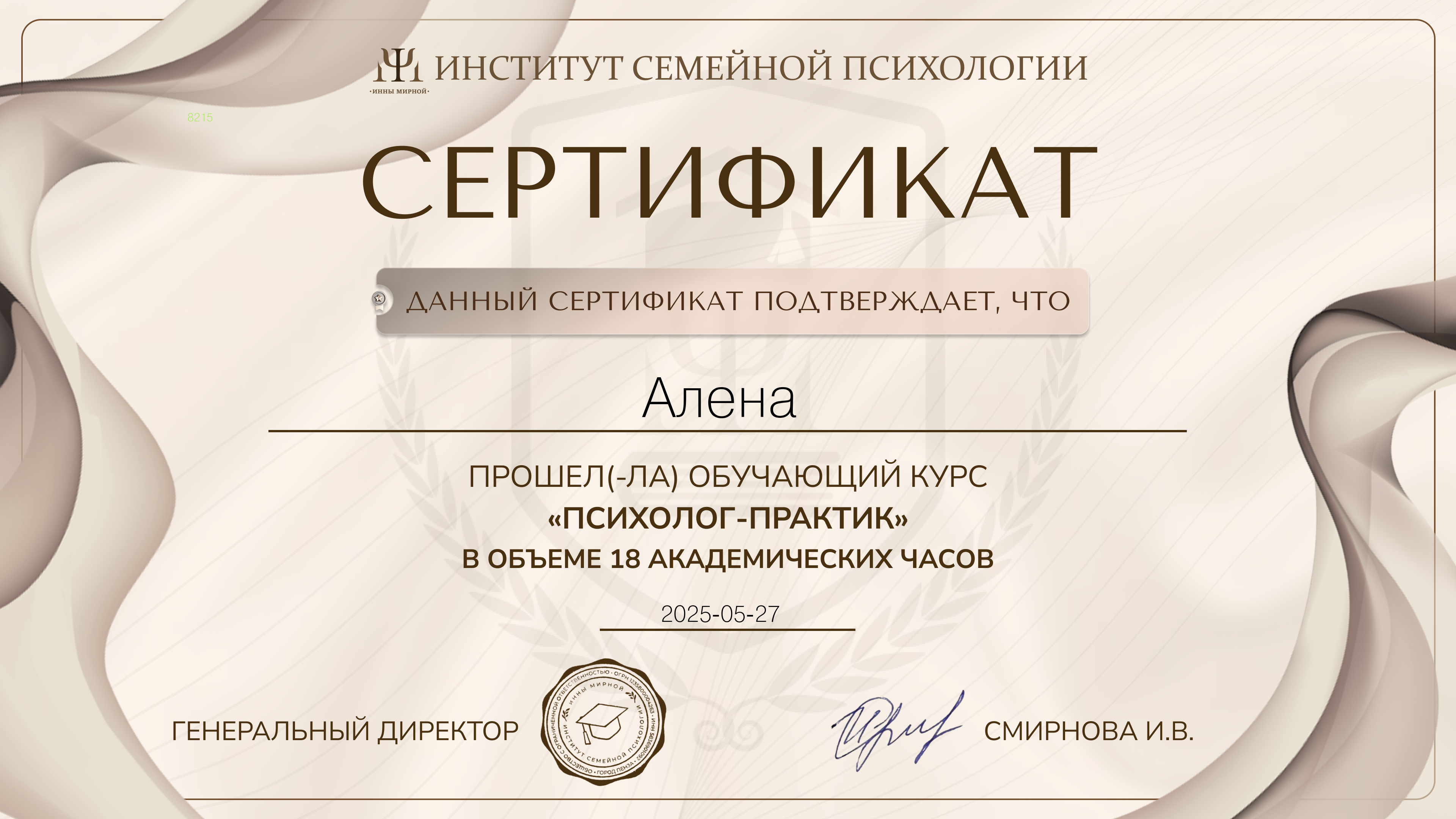 За моей спиной — годы обучения, практика и десятки курсов по разным направлениям психологии. Но самое ценное — это не только дипломы. Это люди, с которыми мы вместе проходили путь: от тревоги к спокойствию, от замешательства к ясности, от боли к принятию